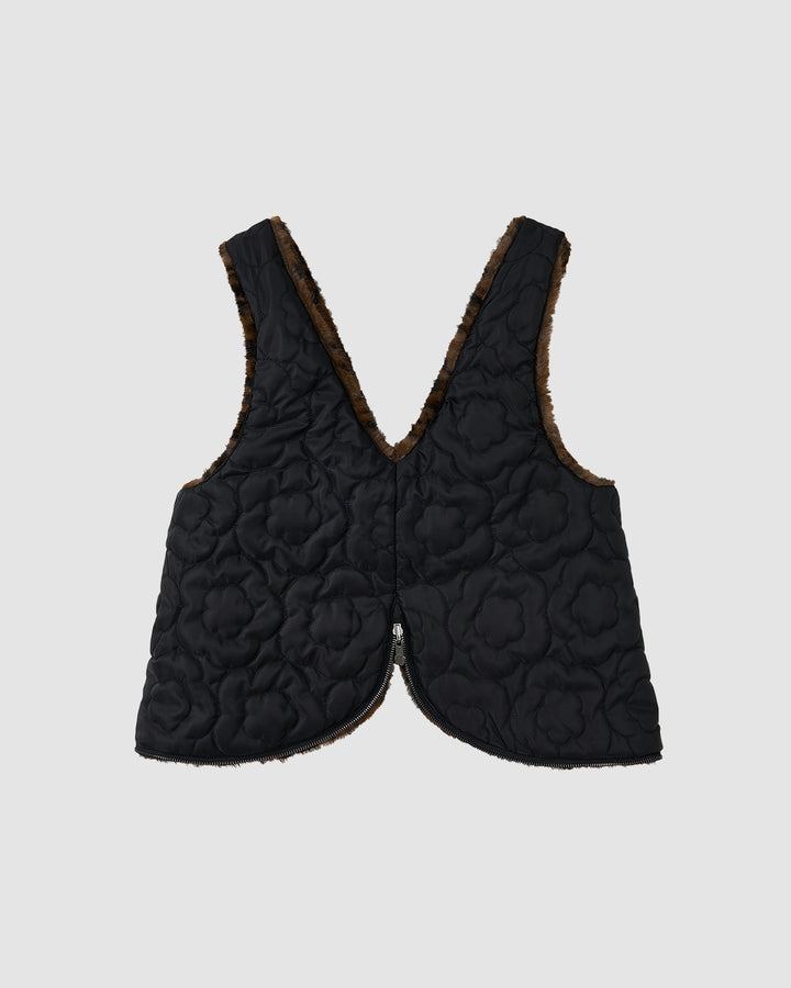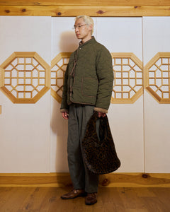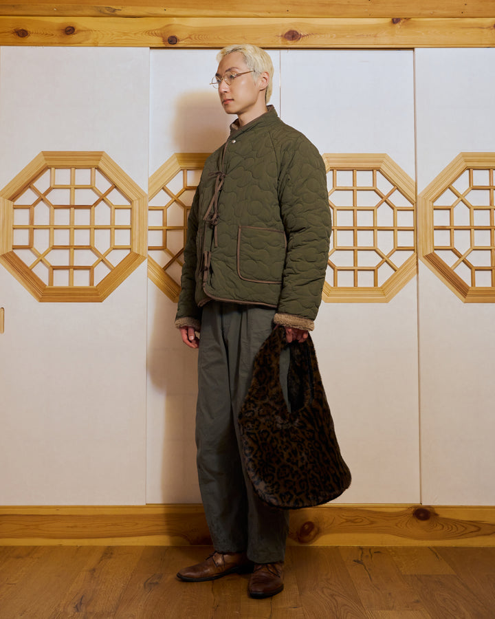 Inspired by the baeja (배자) — a traditional Korean vest worn over hanbok tops — this piece reimagines heritage through a delulu, dual-identity lens. One side is a plush leopard faux-fur dream — soft enough to nap in. Flip it over, and you’ve got our quilted Mochi nylon side for when you can’t commit to a vibe.