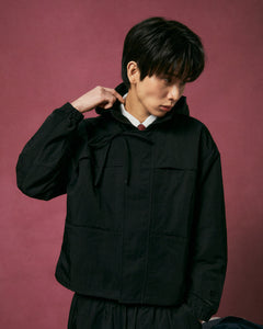 BLACK STAND COLLAR UNIFORM JACKET