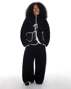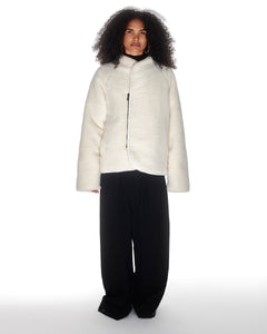 2 jackets for 1 b!tchesssss. We luv a reversible moment! This puffer/fleece pays homage to the traditional Korean hanbok with the asymmetric closures. You get the best of both worlds with a tie closure on the puffer side and a zipper closure on the fleece side. This b!tch is xxtra warm with the super thicc teddy fleece doubled up with the puffer. It really be that Asian realness all wrapped up in one coat.