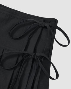 The construction is entirely about optionality. With a 3-tiered button system and double ribbon ties, you can cinch it high for that sharp, pleated silhouette or drop it low for an effortless slouch. It’s traditional Korean pleating met with pure utility