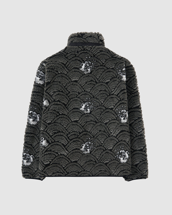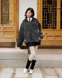 The darker, edgier version of our Blue Wave Fleece. This fleece is a love letter to the waves that carried our ancestors across the ocean. The jacquard pattern nods to old Korean paintings of crashing seas, reimagined for the boba-drinking, meme-scrolling, 3-jobs-and-a-side-hustle generation. Dedicated to all the immigrants and the ancestors who pulled up with nothing but dreams, this jacket makes you feel like a wearable Great Wave — iconic, unstoppable, and soft enough to have a lil cry in. 🌊✨
