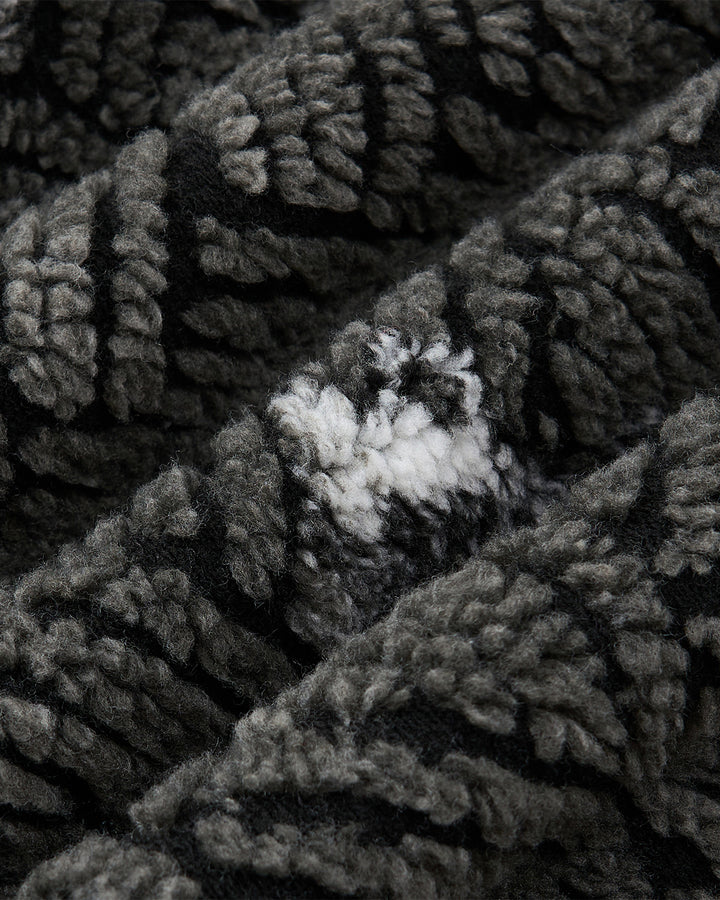 - Embossed Pile fleece with pointillism jacquard; polar fleece inner layer