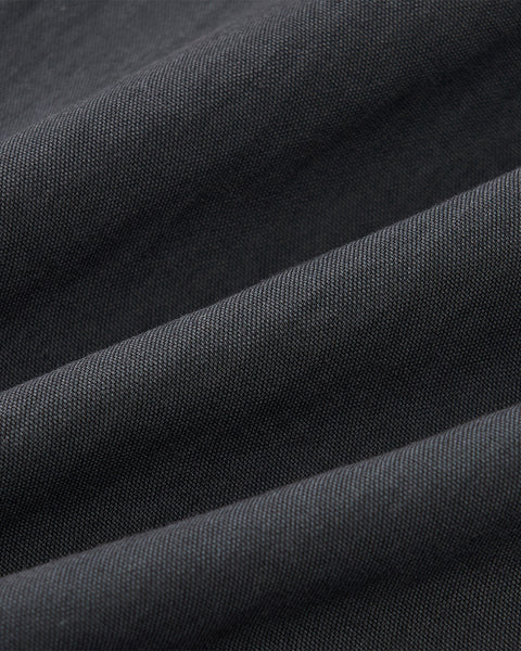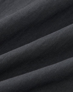 Close-up of charcoal cotton-nylon blend fabric with visible weave and soft folds, forming diagonal lines and subtle shadows—perfect for the CHARCOAL STAND COLLAR UNIFORM JACKET by Sundae School.