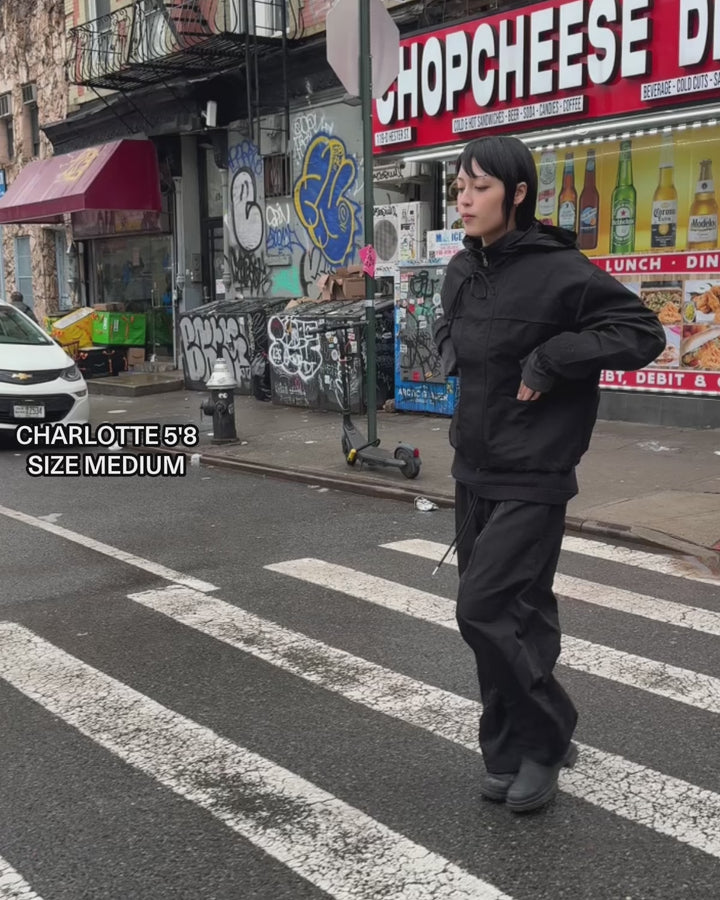 The asymmetric front is a low-key design flex, and the adjustable hems give you total optionality to cinch them for the kicks or let the balloon leg flow. This is the uniform for being permanently in progress but still showing up as the final boss.
