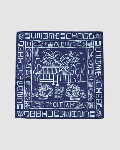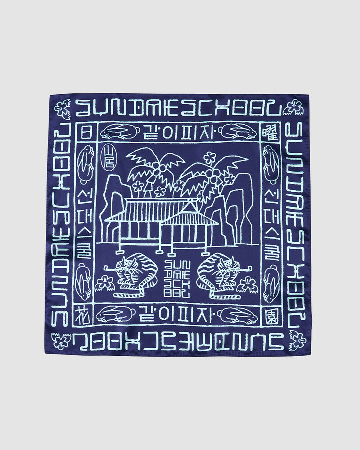 We pulled the custom type from Hunminjeongeum—the original 1446 Hangeul script—and paired it with our own history. It’s an homage to the humble beginnings of the Korean language and the beginnings of Sundae School. 100% silk with a calm luster that isn't too loud, but definitely noticed. Tie it on your bag, around your neck, or keep it in a pocket for the details.