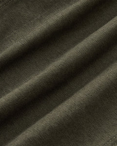 Close-up of the olive green fabric with visible weave and soft folds highlights the texture and softness—ideal for the [PRE-ORDER] OLIVE FIREMAN CLASP JACKET by Sundae School.