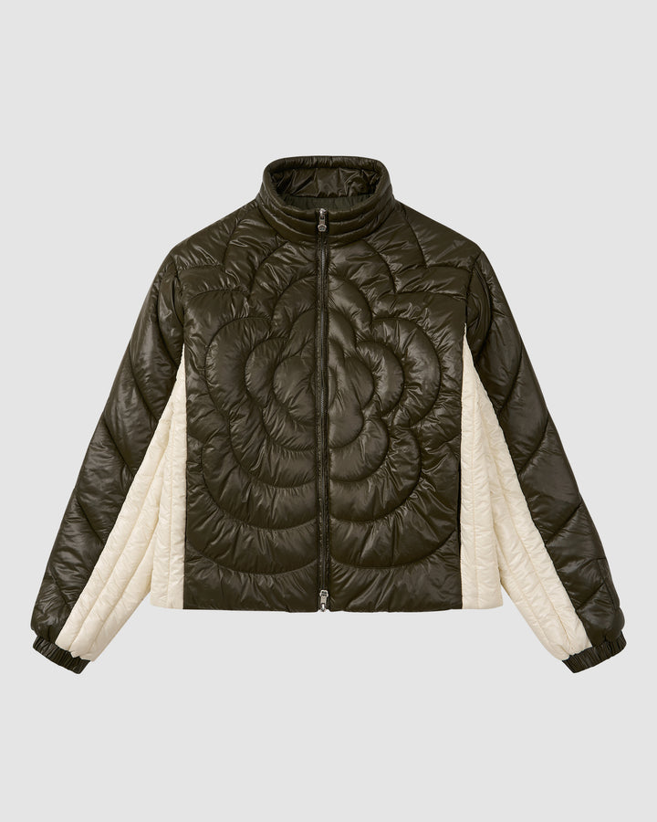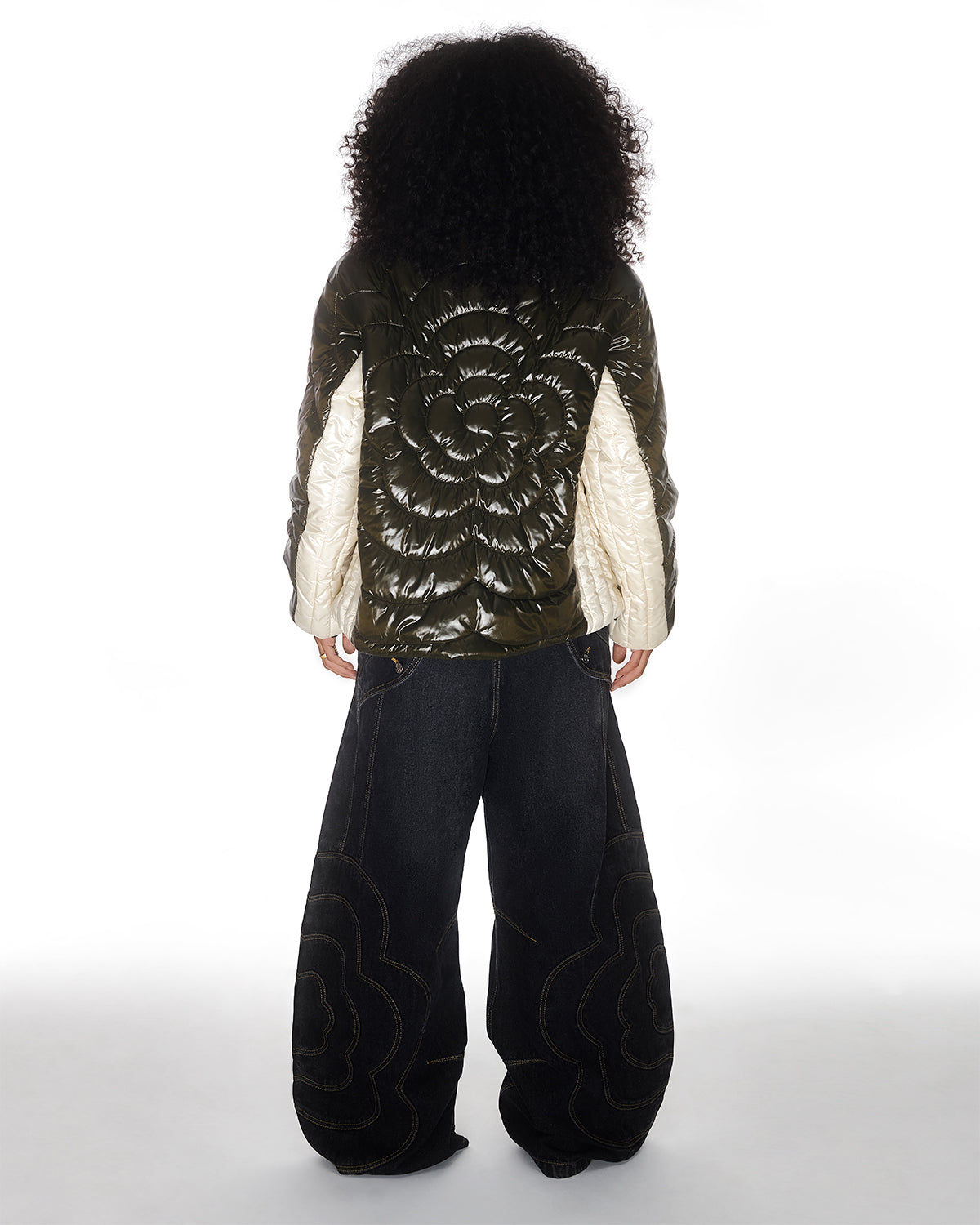 Months of puff science later… we finally cooked up the custom Mochi spiral quilting. 🍡 Cozy, swirly, low-key hypnotic. Lightweight padding = prime for hoodie season, but still holds it down when winter actually pulls up. Two-tone panels + biker attitude = rebel energy without freezing your ass off. Engineered for comfort, styled for rebellion.