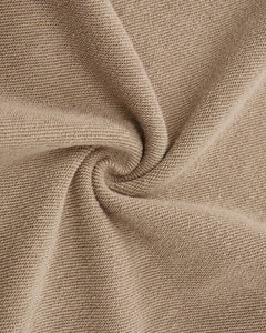 Close-up of TAUPE WRAP SWEATBAJI by Sundae School—beige knitted 100% cotton fabric, twisted to reveal fine stitching and soft texture, perfect for crafting Hanbok-inspired or wide leg sweatpants.